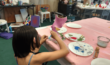 Color Me Mine in Valencia is a pottery center that hosts summer camps for four weeks. Each week has its own theme. Kids enjoy fun crafts, games, and surprises!